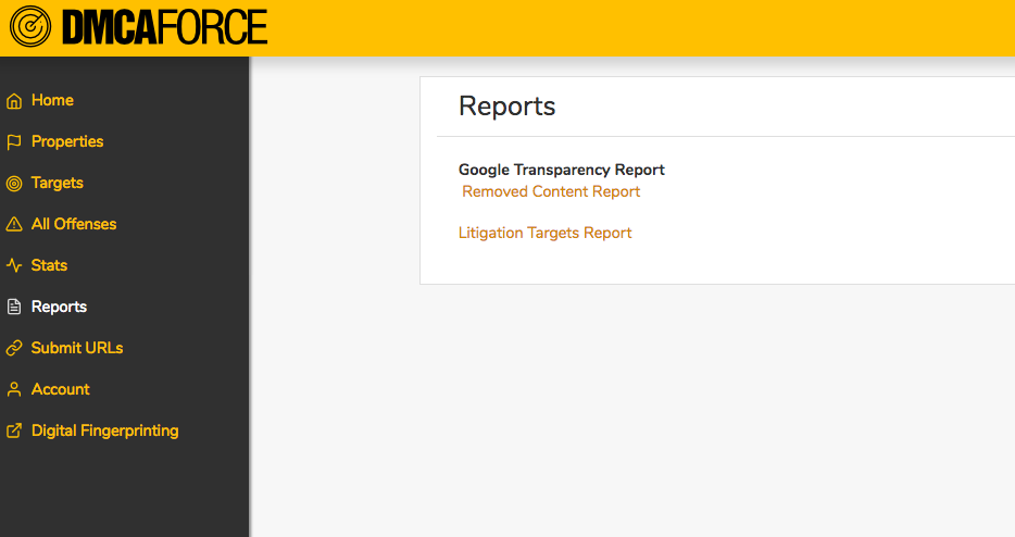 Another important improvement is the new Litigation Target reports, that allows the company to export a list of all the known repeat infringers who have ignored or did not take down content based on DMCA requests, organizing them in a list ready for Lawsuits. This report contains all sites that have received DMCA’s from us but have not complied.